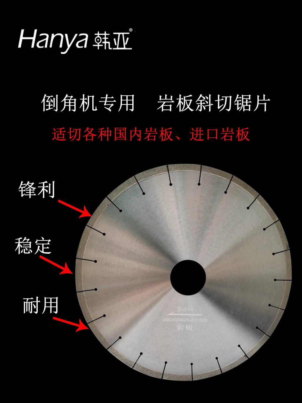 岩板斜切倒角锯片在满足切割面不崩边的前提下,具有良好的切削效率,通过严密的过程控制,保证锯片的形位尺寸具有较高的精度。
