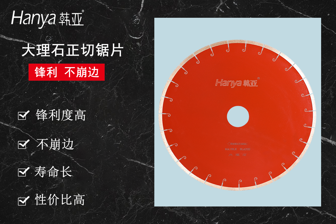 大理石正切锯片适用于各种硬度大理石板材的切割、打磨,通过成熟高端的技术优势,来满足切割面不崩边,形成极高的切削效率。 适用于所有手推切割机、自动桥式切割机。