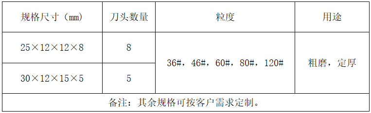 金钢石定厚马蹄磨块广泛用于板材的定厚,通过对产品精确分类,满足不同材料的加工选择,具有锋利度高、磨削效率高、使用寿命长、节约成本等特点。